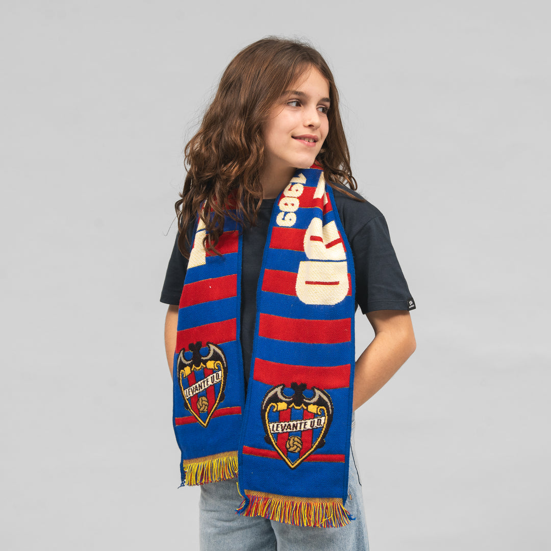 This season, stay warm and show your support for Levante UD with our official scarves. Made with quality materials, they are perfect for any time of year, from cool winter afternoons to the festive atmosphere of the pitch. With the Levante UD crest and the representative colours of the club, each scarf is a declaration of love for the frogs. Ideal for match days or as a gift for any fan of the club.