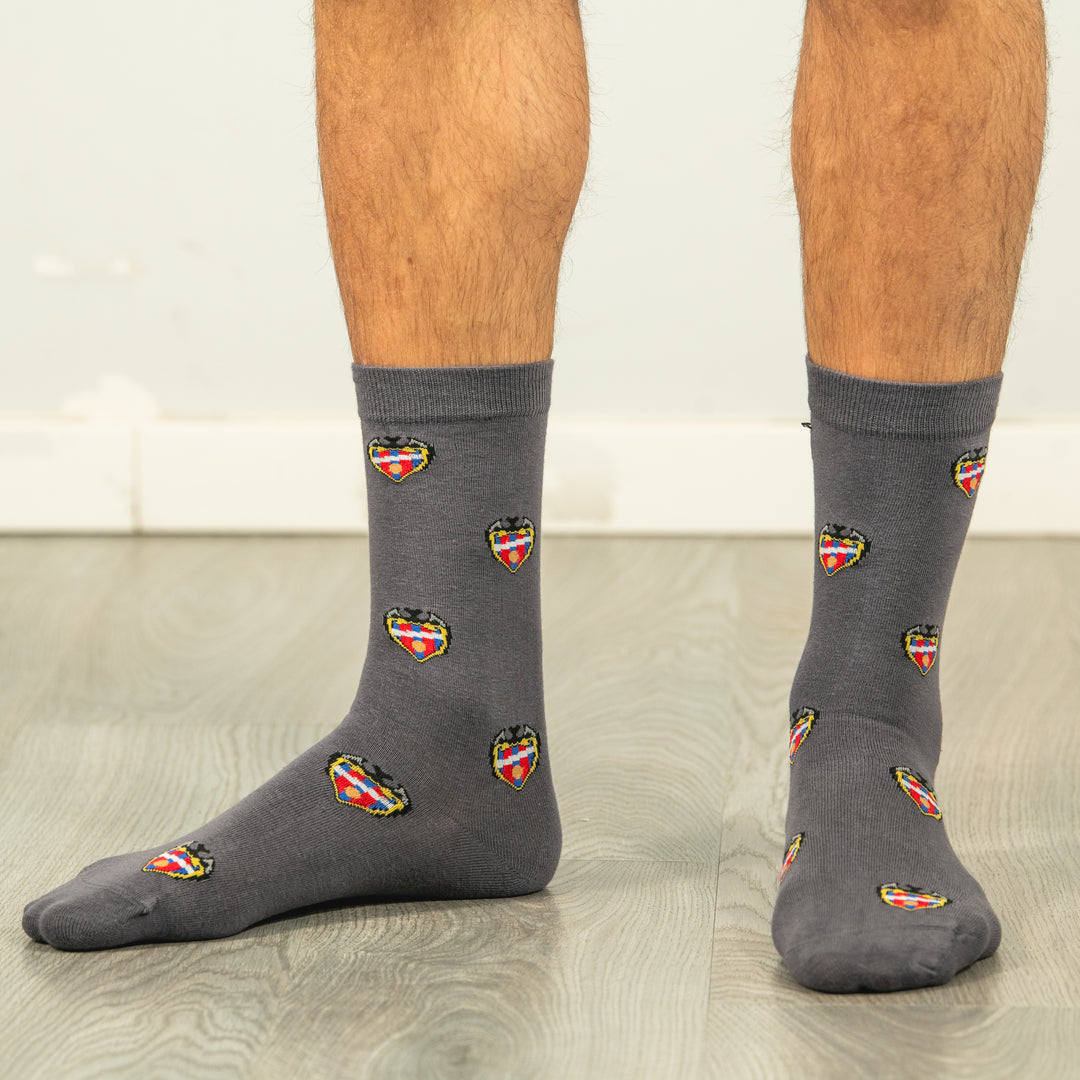 Los Calcetines del Levante UD combinan estilo y comodidad para aquellos que quieren añadir un toque deportivo a sus combinaciones diarias. Confeccionados con materiales suaves y resistentes, estos calcetines son ideales tanto para uso cotidiano como para un look más casual. Con diseños elegantes y los colores representativos del club, los calcetines de moda ofrecen una forma fácil y cómoda de lucir tu soporte por el Levante UD con estilo. Perfectos para cualquier ocasión, estos calcetines son el complemento ideal para cualquier aficionado que desee marcar la diferencia.