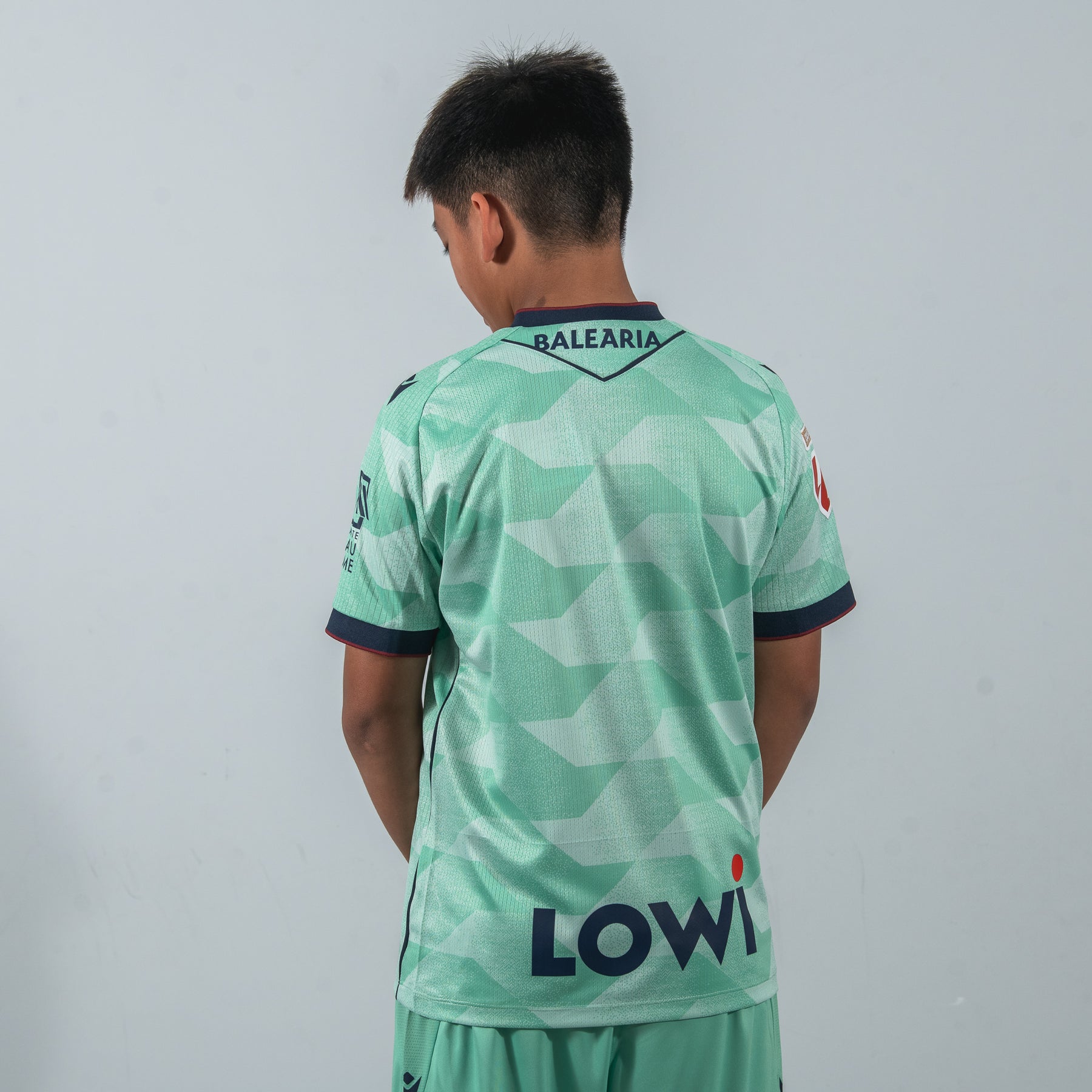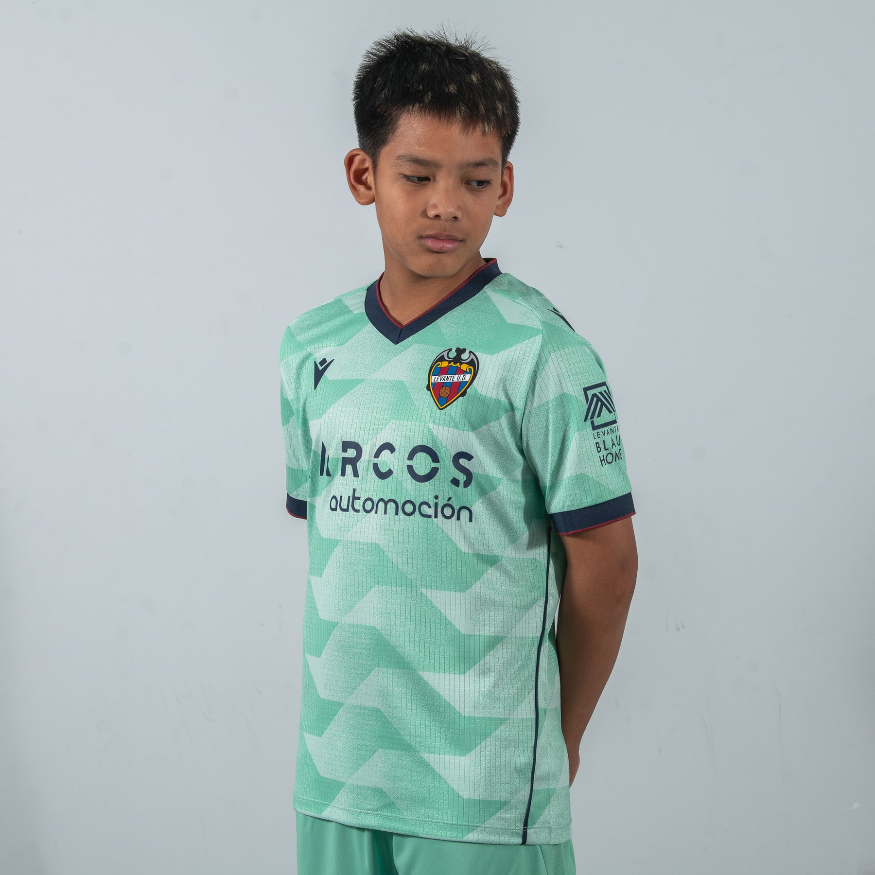 Verde menta, detalles azulgranas y un diseño gráfico geométrico y moderno: así es la tercera equipación del Levante UD para la temporada 2025-2026, diseñada por Macron.