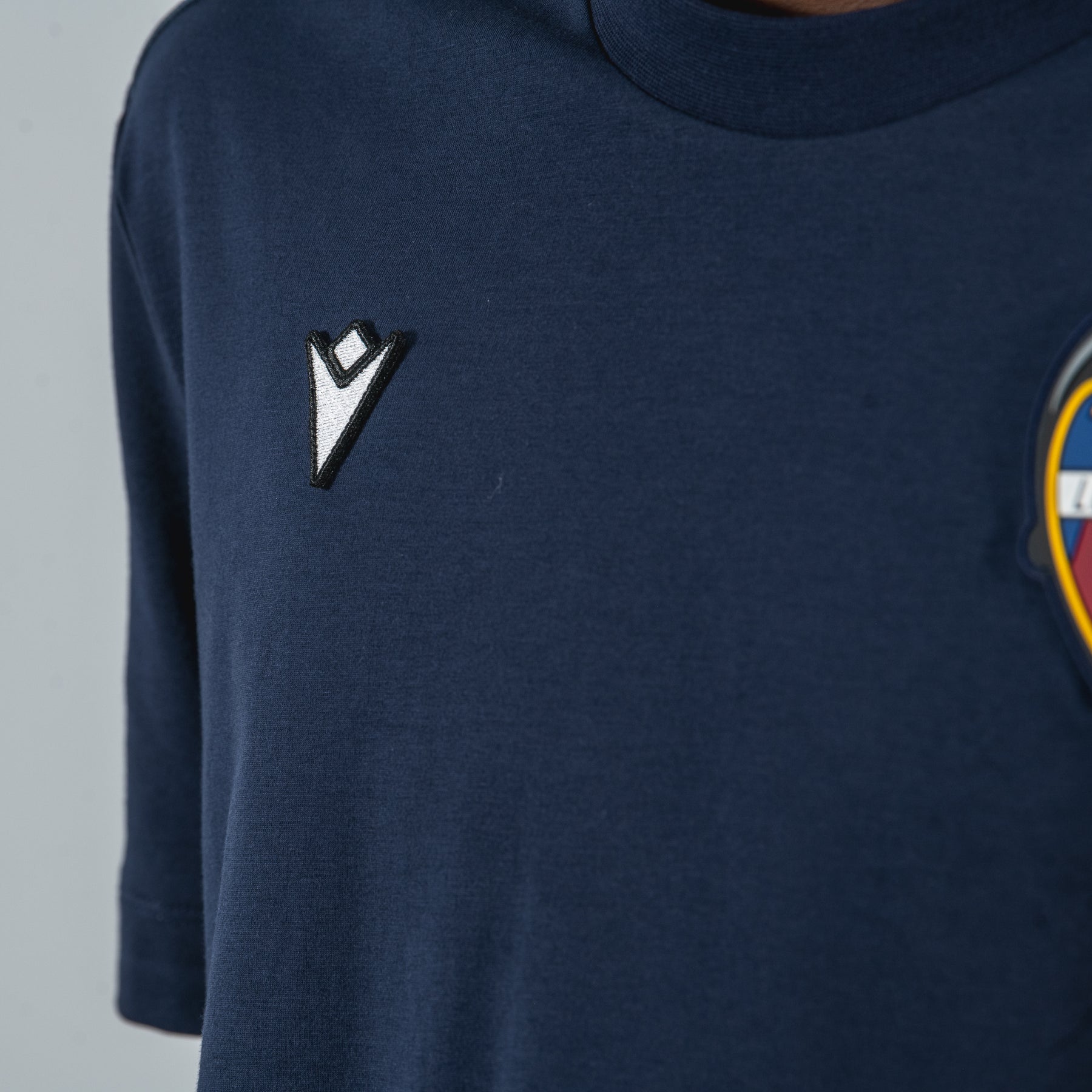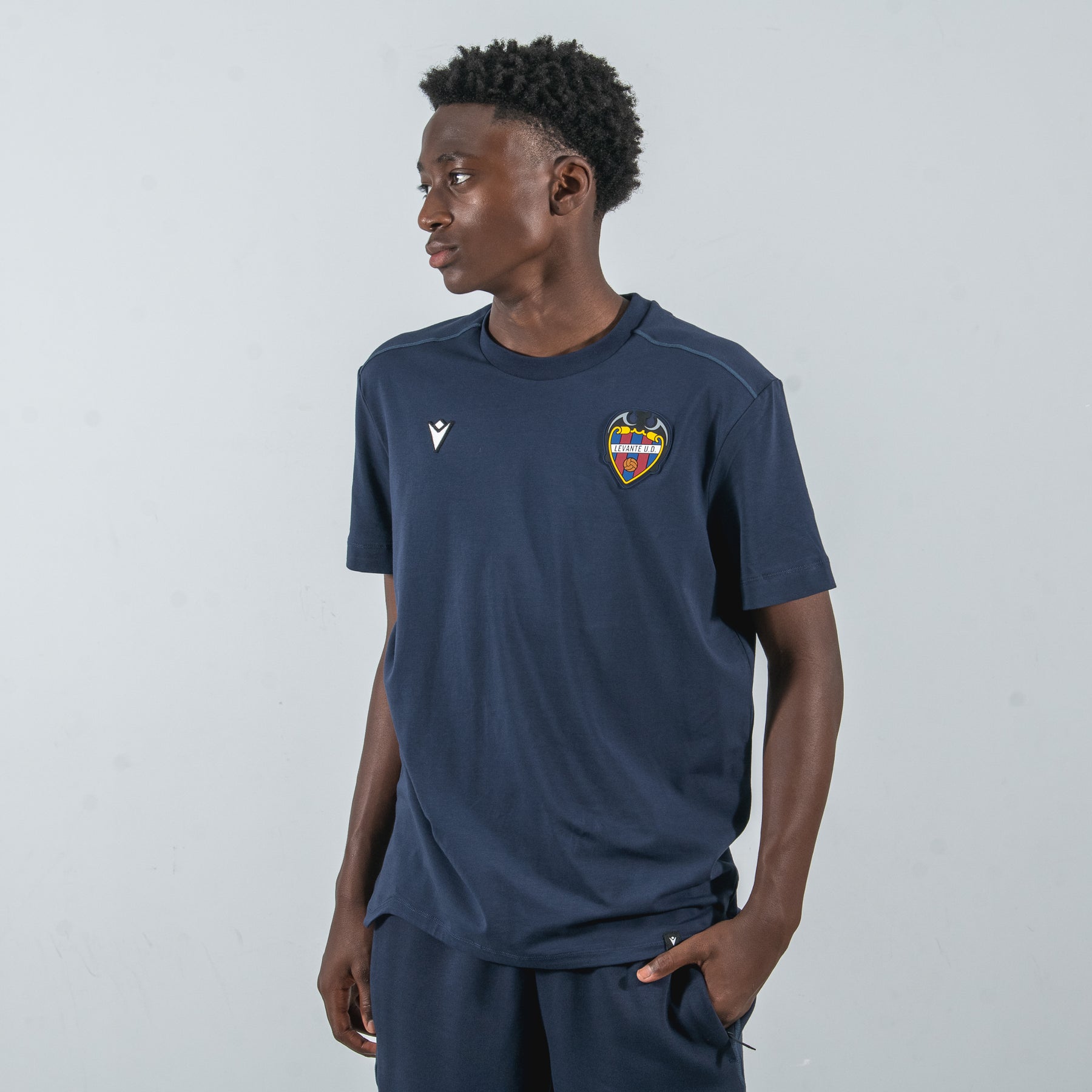 La camiseta Athleisure de paseo del Primer Equipo del Levante UD para la temporada 25/26 ofrece una comodidad premium. En azul marino, con escudo bordado a color en el pecho y el Macron Hero en blanco, esta prenda de corte relajado y transpirable es perfecta para los desplazamientos, para no perder nunca el estilo granota.