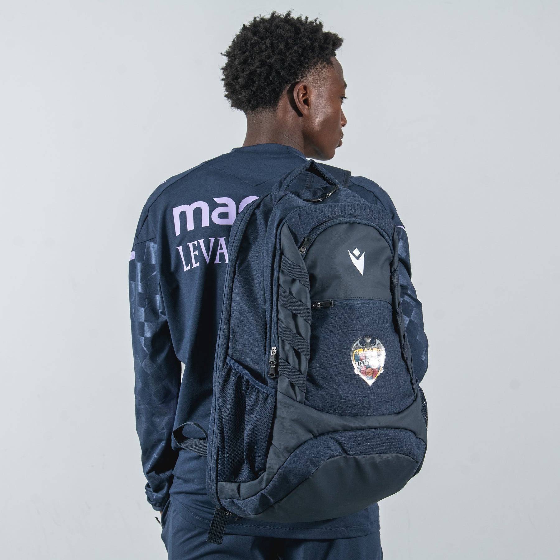 La mochila oficial del Levante UD para la temporada 25/26 combina funcionalidad y estilo granota en azul marino. Con compartimento principal con cremallera, bolsillo frontal con el escudo a color y logo de Macron en blanco, incluye correas acolchadas ajustables y panel trasero transpirable. Confeccionada en poliéster reciclado resistente al agua, es ideal para llevar el equipamiento a entrenamientos, partidos o desplazamientos.