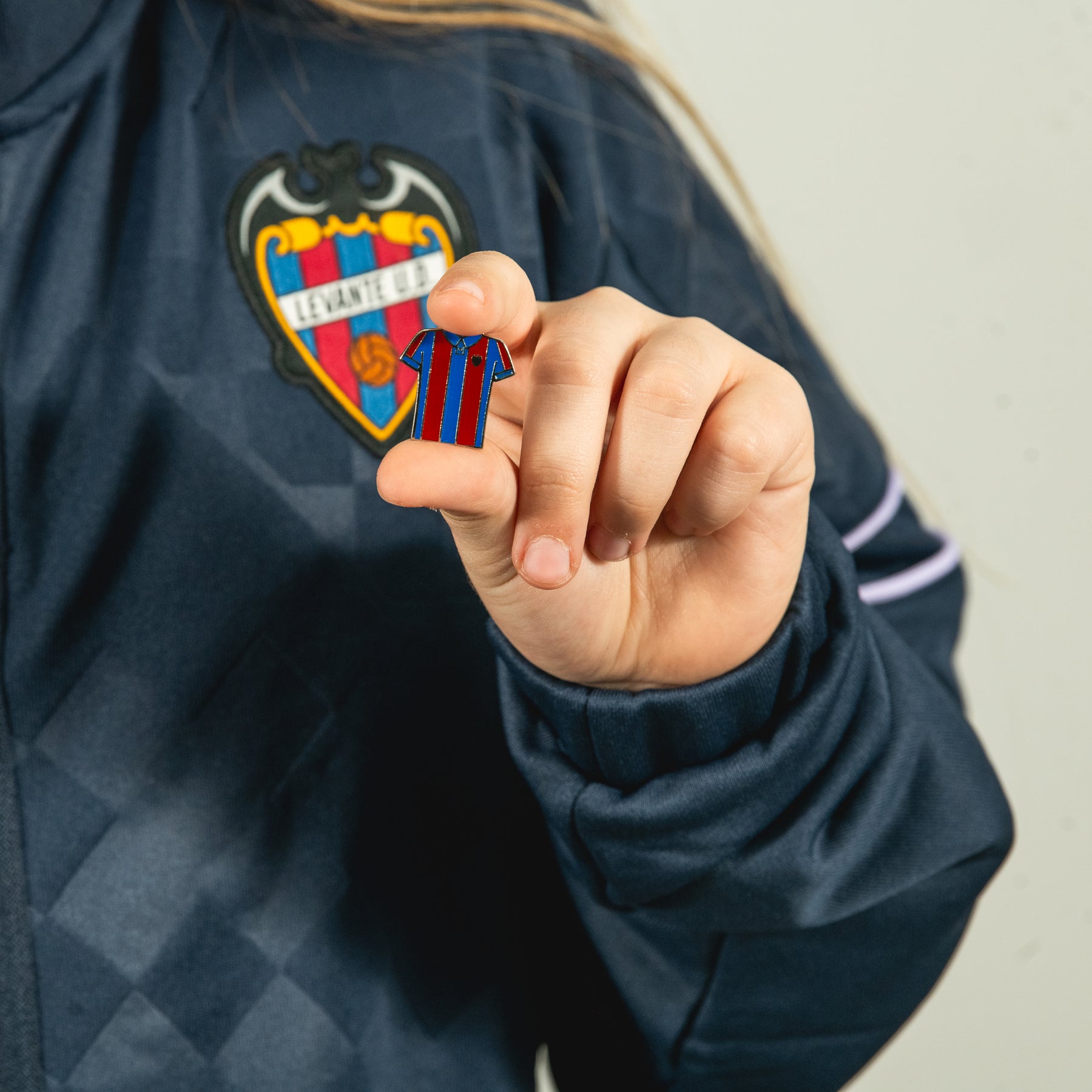 Luce los colores de tu equipo en la solapa, mochila o gorra con este pin metálico oficial que recrea la clásica camiseta del Levante UD con gran detalle; su acabado pulido y los colores esmaltados capturan la esencia de la equipación azulgrana en un accesorio discreto pero lleno de sentimiento, ideal para cualquier aficionado que quiera llevar su pasión siempre visible.